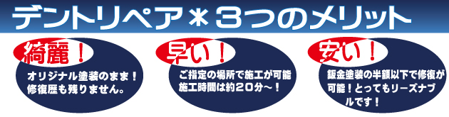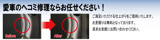 ようこそ!! 群馬県のデントリペア専門店、『デントリペア Wonder』のホームページへ。 デントリペアの技術であなたの愛車のヘコミを 綺麗に!早く!安く!修理いたします。 『デントリペア Wonder』は、お客様の大切な愛車のヘコミを丁寧に時間をかけて作業いたします。